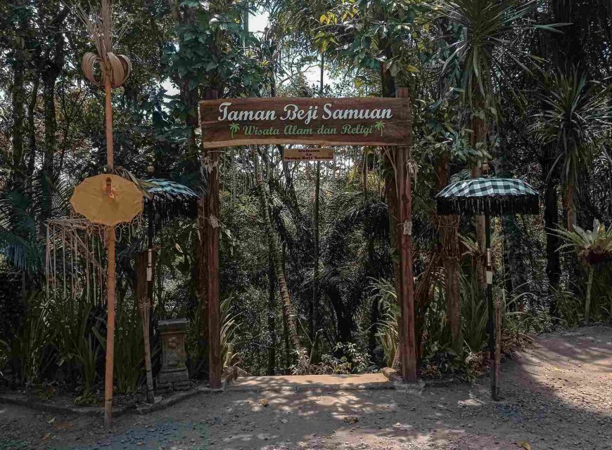 Purify your body and soul through a serene melukat experience at Beji Samuan Park, where sacred water flows amidst peaceful nature and Balinese spiritual tradition.
