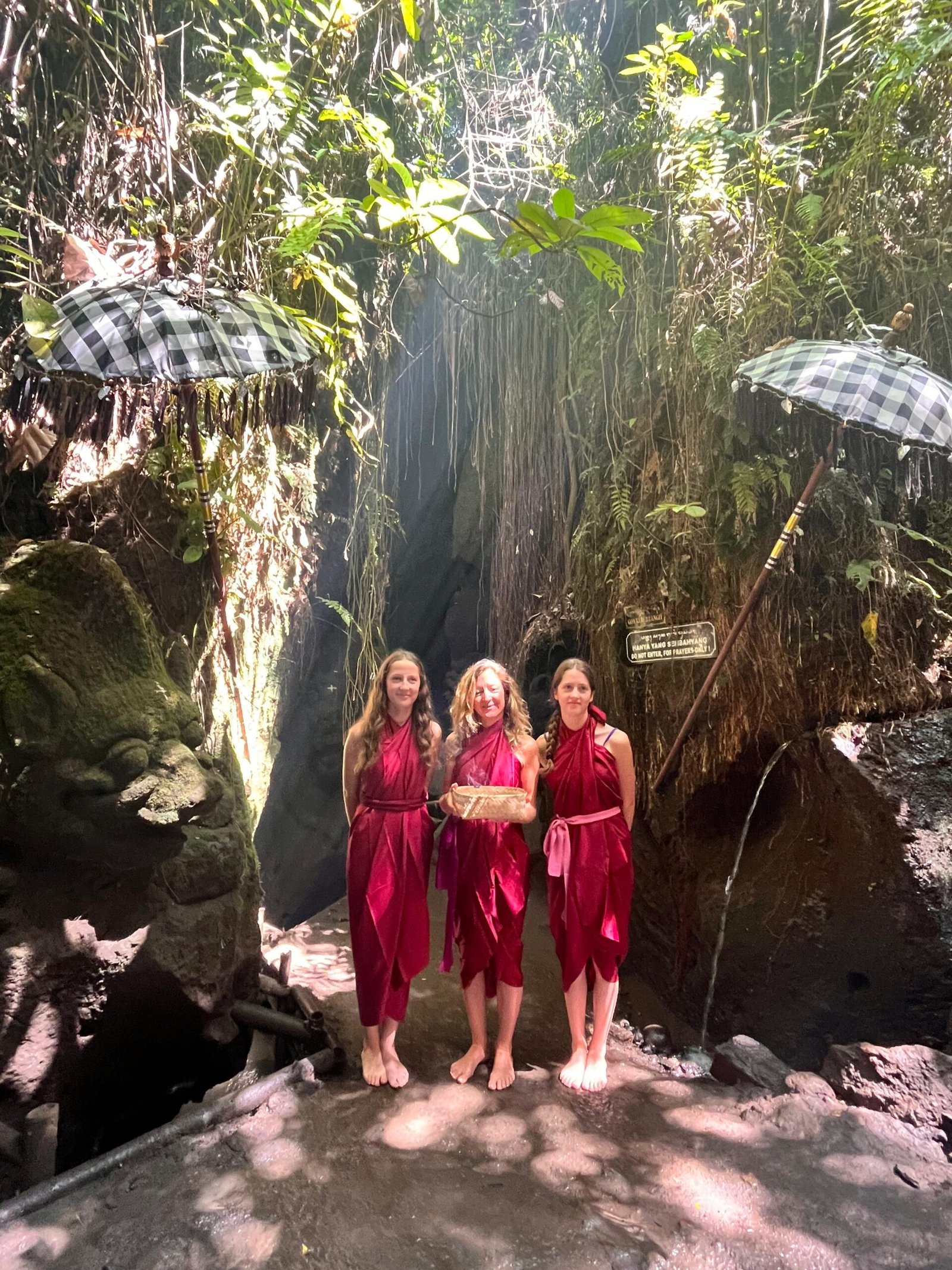 On this tour, you’ll take part in a powerful melukat ritual that guides you through prayer, nature, and self-purification. The experience includes walking through a natural cave, praying at peaceful shrines, and bathing beneath the waterfall symbolizing the cleansing of the mind, body, and spirit.
